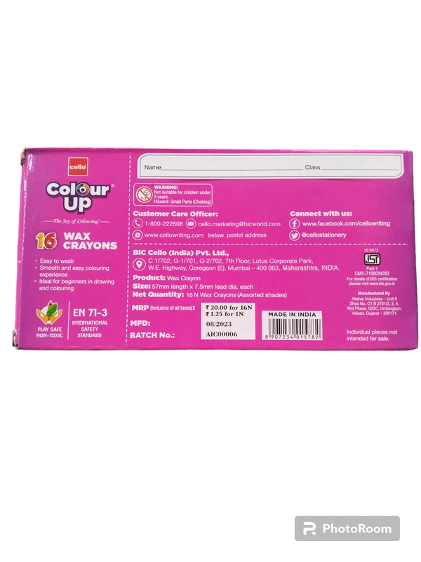 Cello Colour Up Wax Crayons 16 Shades