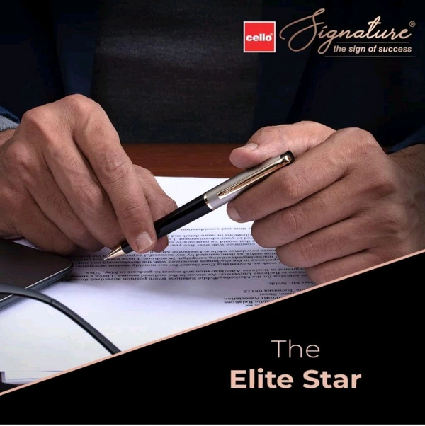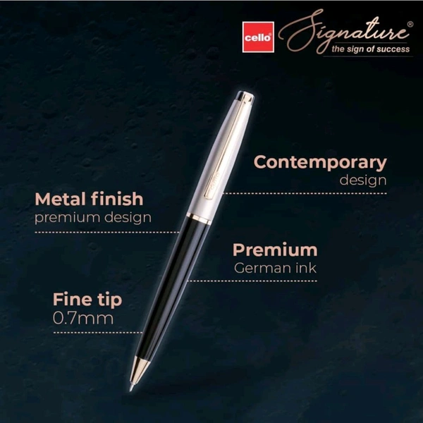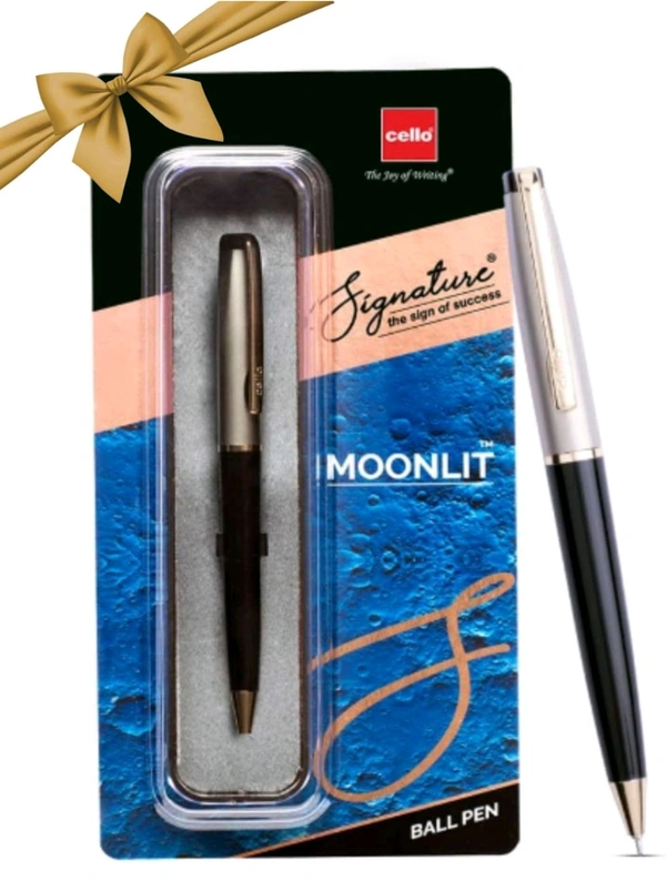 Cello Signature Moonlit Ball Pen | Blue Ink | 1 Ball Pen | White Gold, Black & Gold Finish | Premium Metal Pen for Gift | Stylish Corporate & New Year Gifts for Men & Women