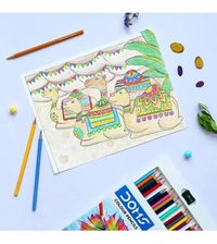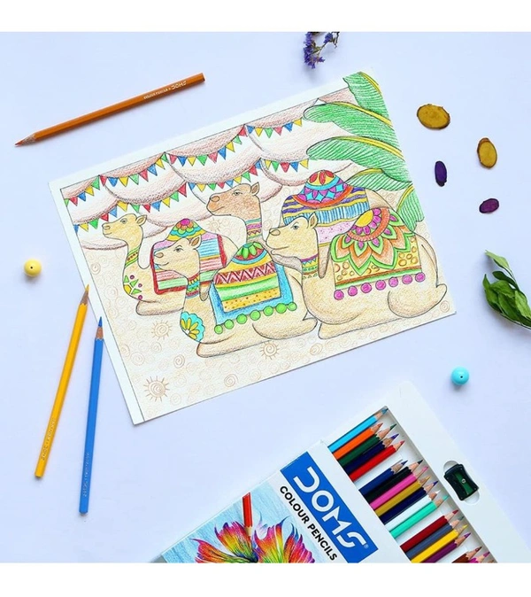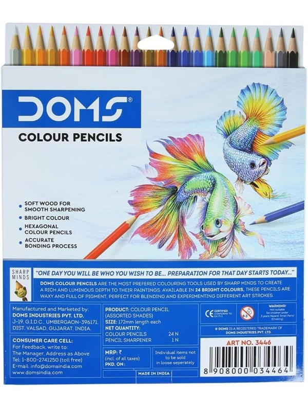 DOMS 24 Shades Color Pencils|Hexagonal Shaped Body For Comfortable Grip|Bright&Playful Colors|Free Sharpner With Each Pack|Non-Toxic&Safe For Childrens|Pack Of 1|Multicolor