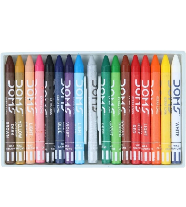 Doms Non-Toxic Extra Long Wax Crayon Set in Cardboard Box (16 Assorted Shades )