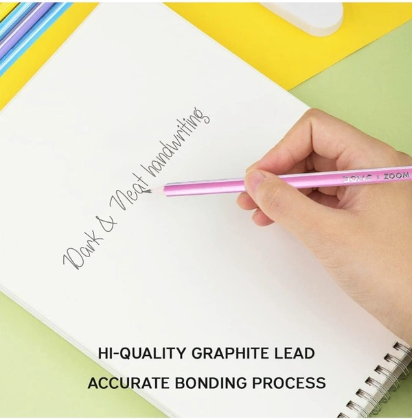Doms Zoom Ultimate Dark Pencil Box Pack | Triangular Shape For Easy Holding & Comfort | Free Eraser & Sharpner With Each Box | Dark & Neat Handwriting | Pack of 10 Pencils